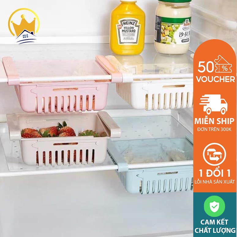 Rổ nhựa kéo dài kẹp tủ lạnh_Rổ đựng đồ tiện lợi trong tủ lạnh_Khay nhựa tủ lạnh đa năng