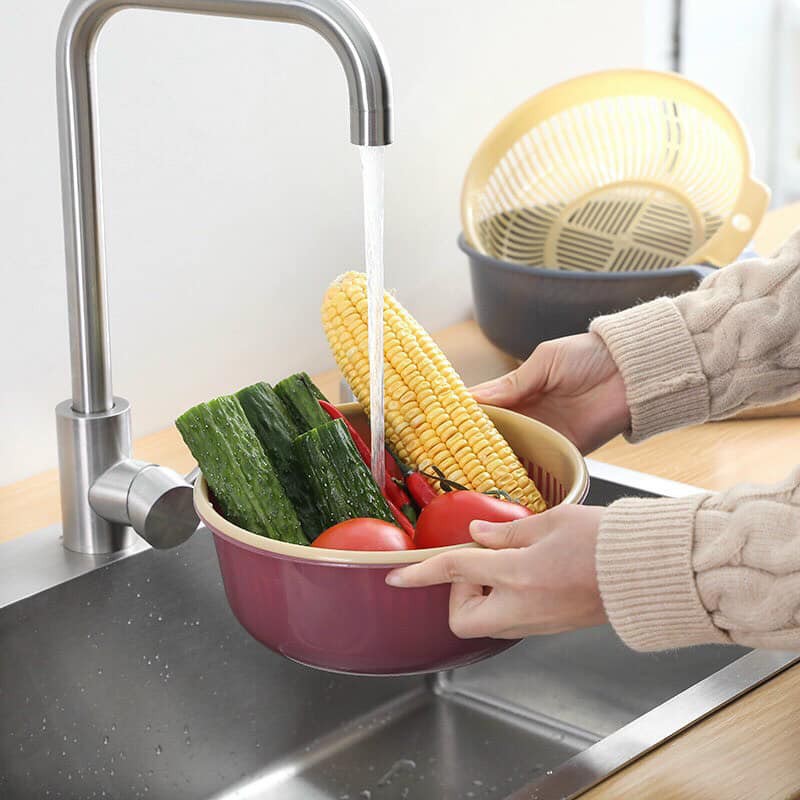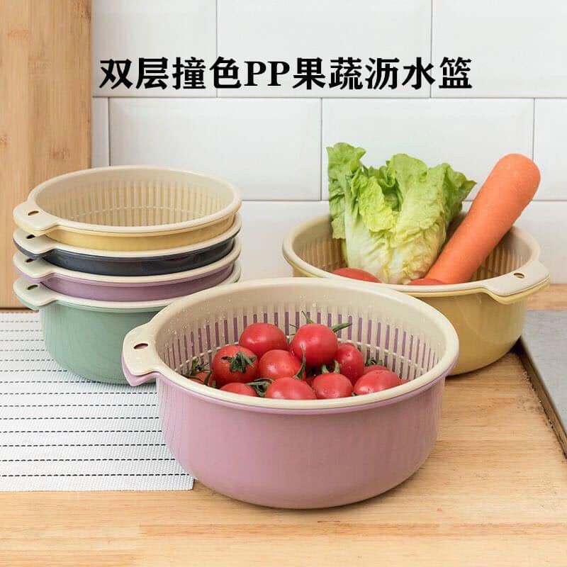 Nhà cửa & Đời sống > Dụng cụ chăm sóc nhà cửa > Chậu, xô & gáo nước || Rổ Nhựa Rửa Rau Củ Quả Hai Lớp Tiện LợiCòn hàng