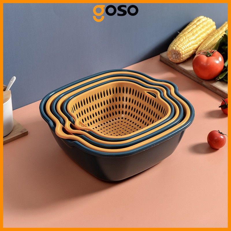 Kết hợp 2 loại rổ thành một đôi, một chiếc có công dụng để ráo, 1 chiếc để đựng nước, mang lại hiệu quả mỗi khi ngâm, rửa