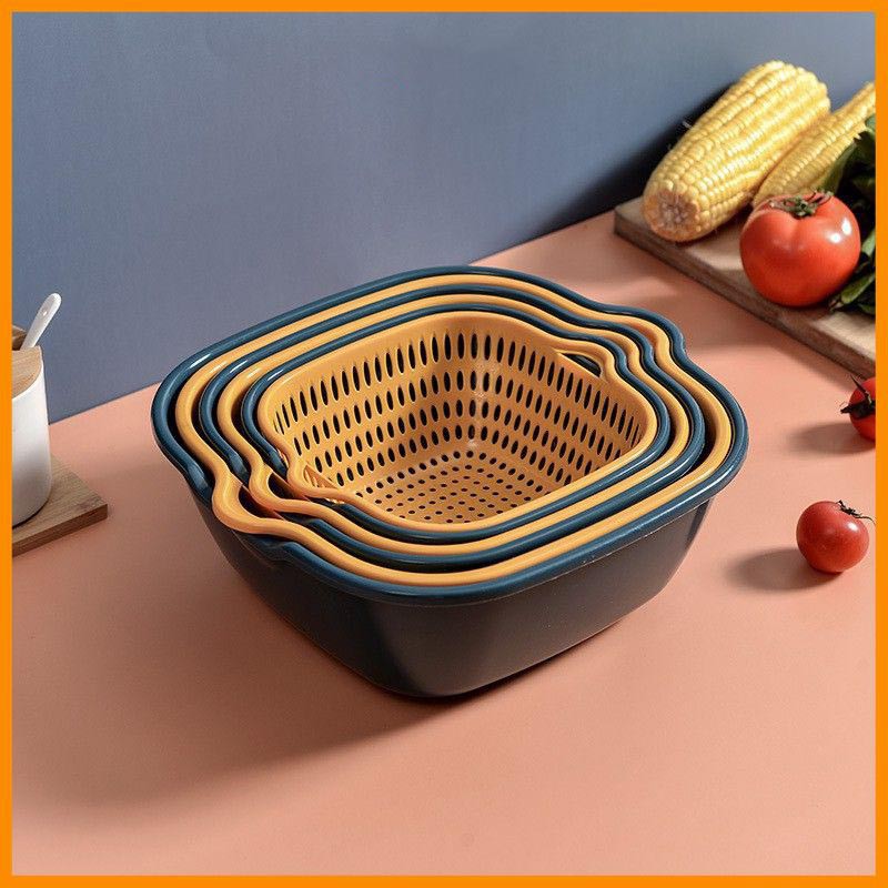 Kết hợp 2 loại rổ thành một đôi, một chiếc có công dụng để ráo, 1 chiếc để đựng nước, mang lại hiệu quả mỗi khi ngâm, rửa