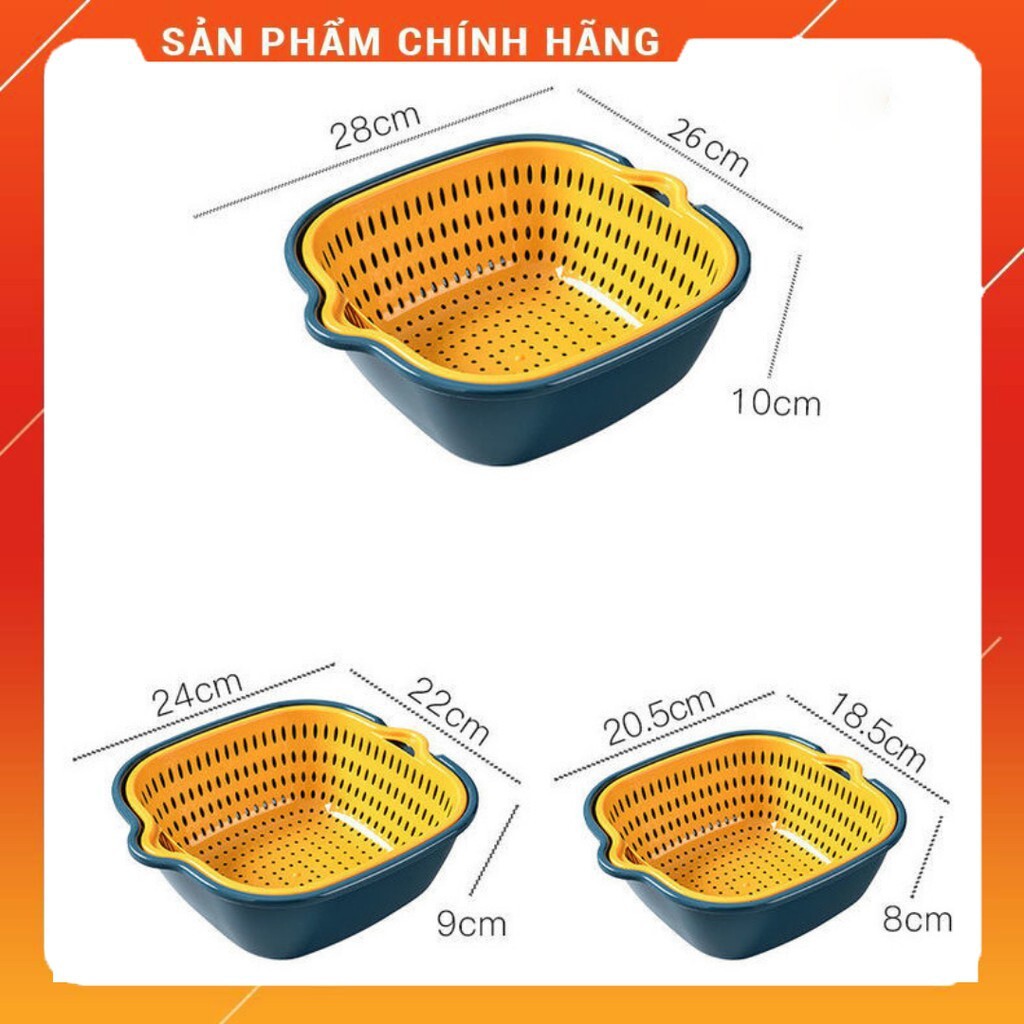Kết hợp 2 loại rổ thành một đôi, một chiếc có công dụng để ráo, 1 chiếc để đựng nước, mang lại hiệu quả mỗi khi ngâm, rửa