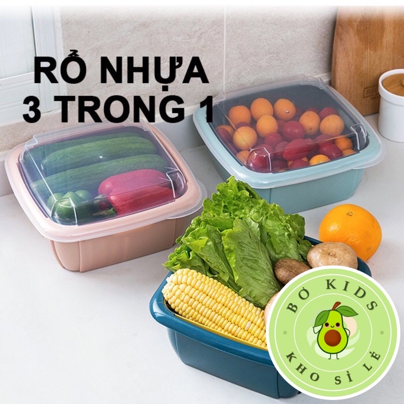 Tên Sản Phẩm: Bộ Rổ Nhựa Vuông Kèm Chậu Có Nắp Đậy Nhựa ABS Cao Cấp- Chậu nhựa kèm rổ dùng để rửa rau củ, trái cây, có kèm nắp đậy giúp bảo quản thực phẩm tránh bụi hay côn trùng hoặc lưu trữ thực phẩm trong tủ lạnh.