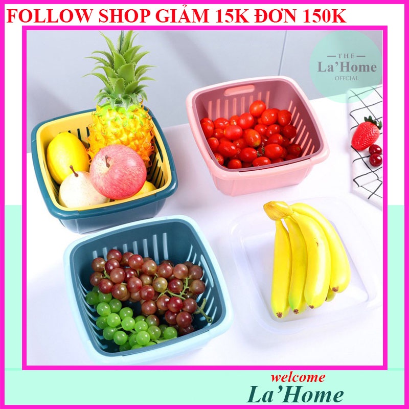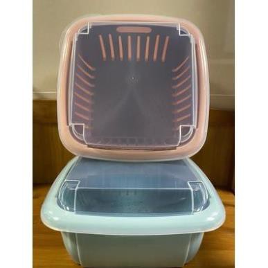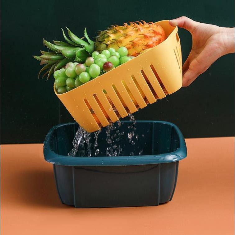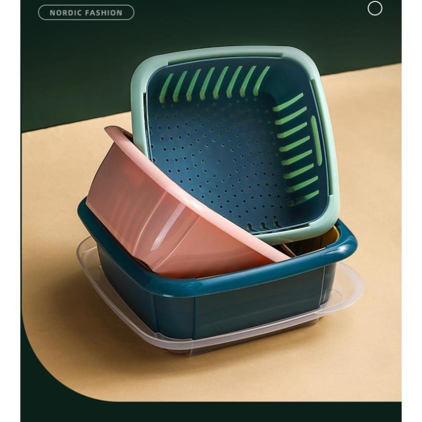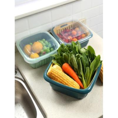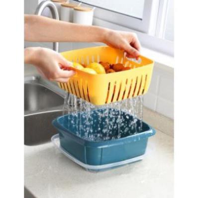 - Bộ rổ nhựa kèm chậu đựng rau củ quả có nắp đậy kèm lỗ thoát nước 3 trong 1 đa năng sẽ giúp rau củ thực phẩm trong nhà bạn luôn tươi mới khô ráo sau khi rửa hoặc bảo quản trong tủ lạnh.
