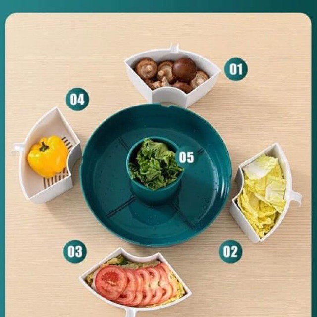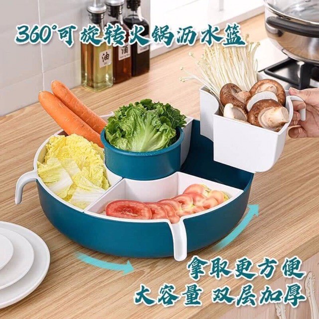 Rổ nhựa xoay thông minh , gồm 5 khay để rau và thực phẩm .Ăn lẩu thì rất tiện nha , có thể xoay 360 độ