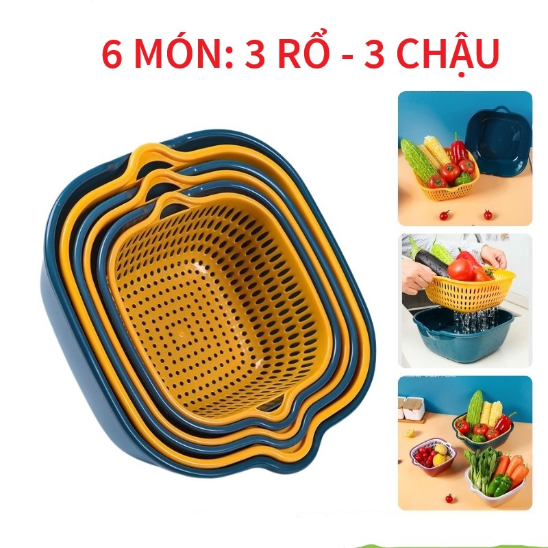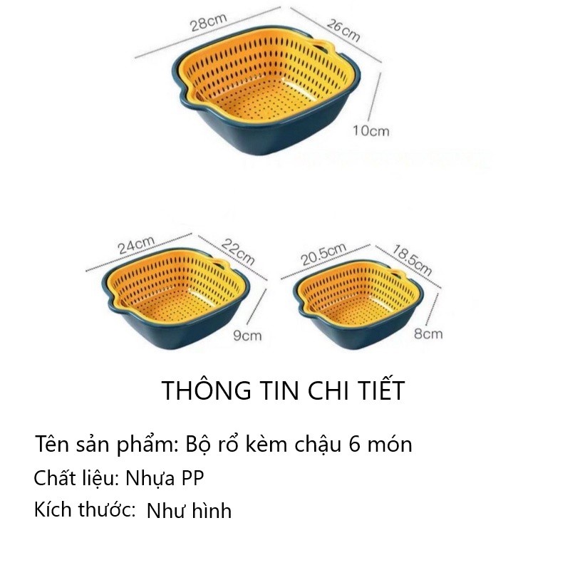 Rổ nhựa🍒6 MÓN🍒chữ nhật đựng đồ kèm chậu. set rổ 6 món 3 chậu 3 rổ⭐ Tại sao quý khách nên chọn mua hộp cơm này tại DOHI STORE trước vô vàn sự lựa chọn khác?