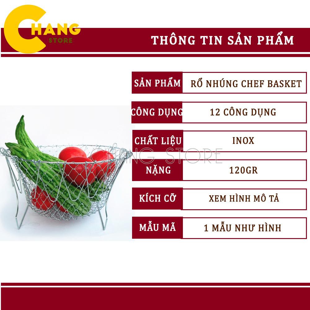 - Chất liệu thép không rỉ, giúp kéo dài tuổi thọ của rổ. Bạn có thể sử dụng Rổ chế biến thực phẩm đa năng thay cho Rổ chiên, Vỉ hấp, Vỉ nướng, Giỏ đựng...Rổ Nhúng Thông Minh Chef Basket