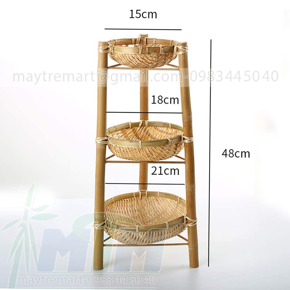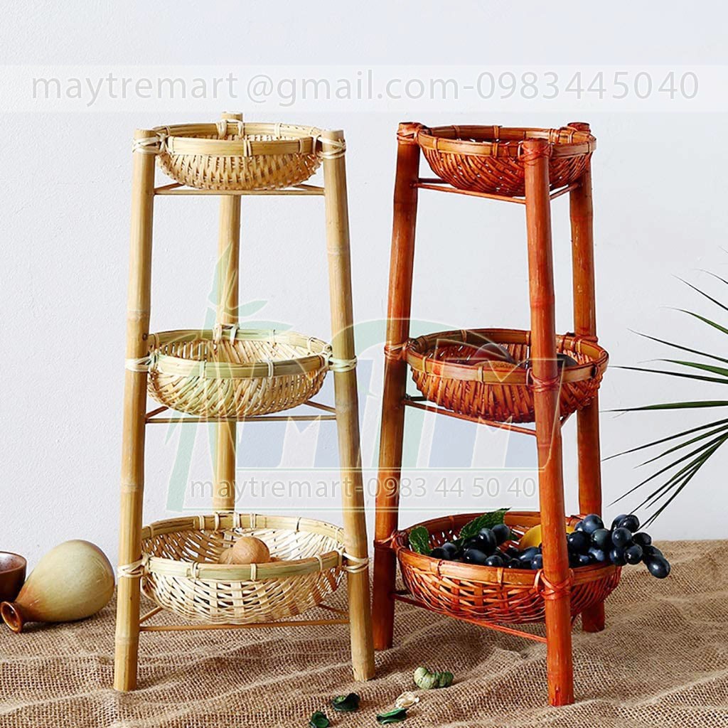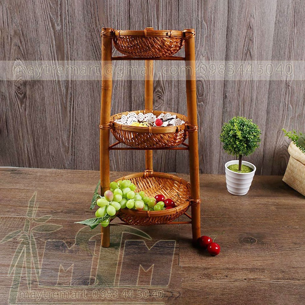 Nhà cửa & Đời sống > Dụng cụ chăm sóc nhà cửa > Chậu, xô & gáo nước || Rổ rá tre 3 tầng trang trí đồ ăn, buffet.Còn hàng