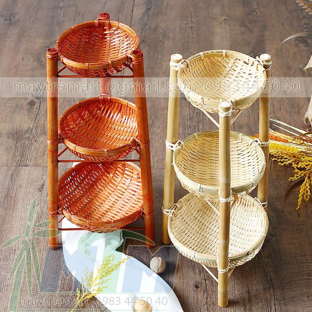 Rổ rá tre 3 tầng trang trí đồ ăn, buffet.