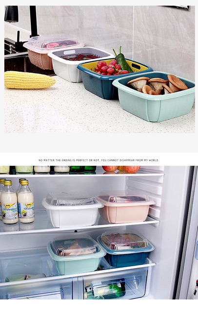 Rổ ráo nước kèm chậu và nắp đậy lưu trữ thực phẩm