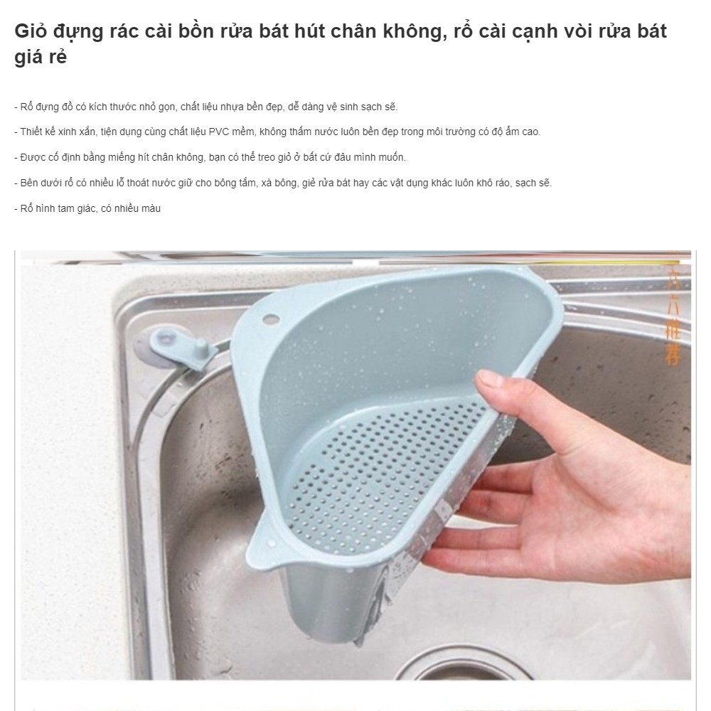 Nhà cửa & Đời sống > Dụng cụ nhà bếp > Khác || Rổ ráo nước, rổ lọc rác gắn bồn rửa chén đa năng hình tam giácCòn hàng