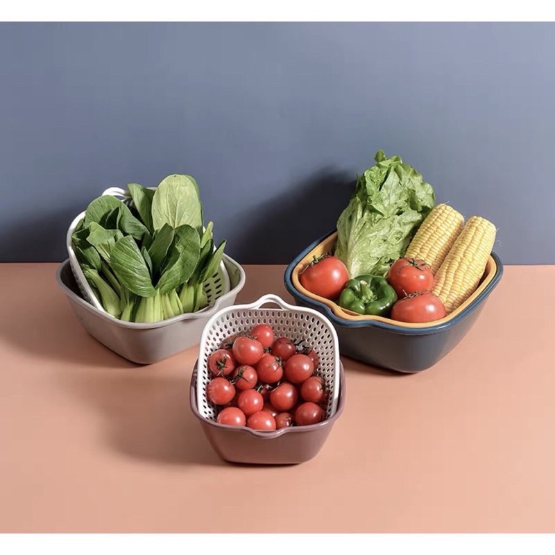 Nhà cửa & Đời sống > Dụng cụ chăm sóc nhà cửa > Chậu, xô & gáo nước || Rổ ráo nước/Rổ Rửa Rau Củ Quả Hai Lớp Ráo Nước Tiện Dụng Cho Nhà BếpCòn hàng