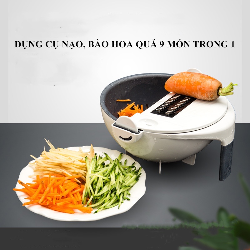 Bộ Rổ Rửa Kèm Nạo 9 In 1 Đa Năng 7 Lưỡi 7 Kiểu Nạo Hàng Cao Cấp Góc Xoay Tự Động- Dễ Rửa Rau
