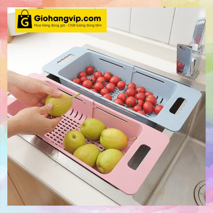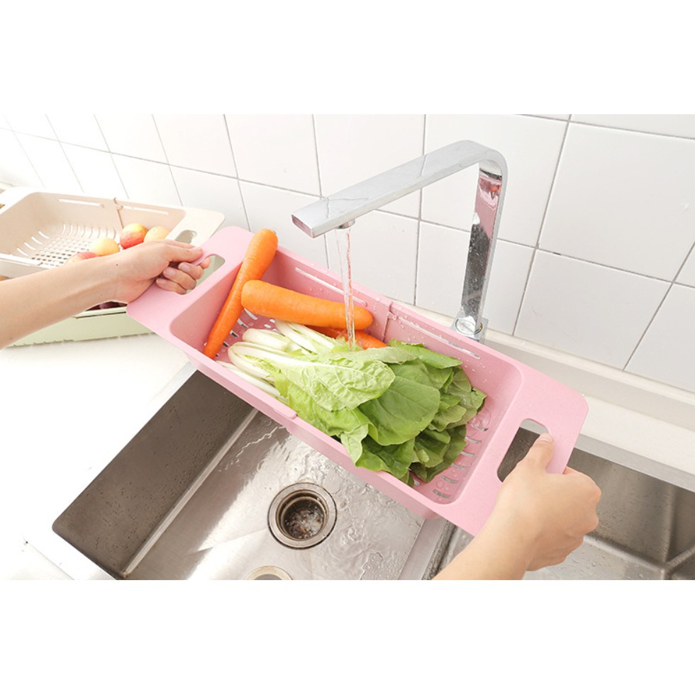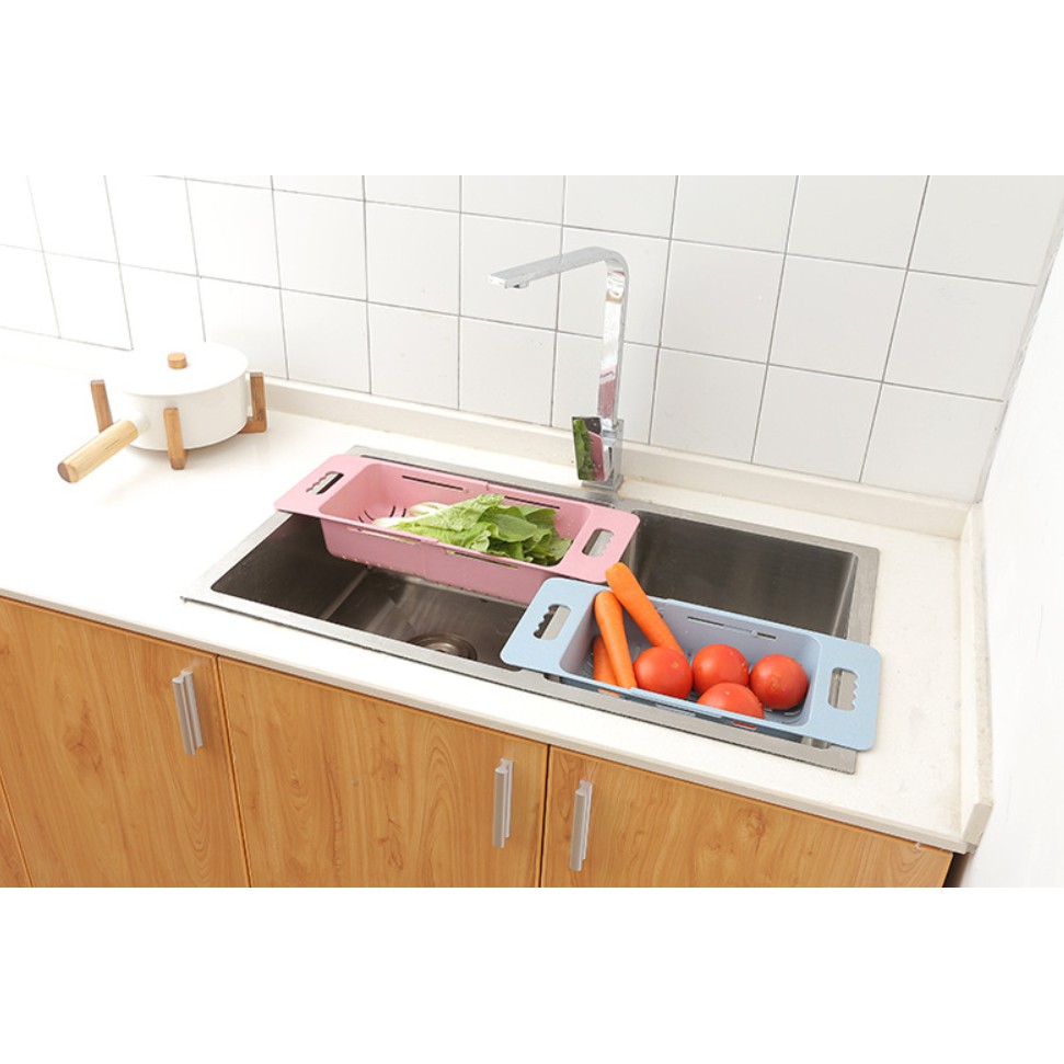 Rổ rửa rau củ đa năng - Thiết kế thông minh giúp người dùng có thể dễ dàng điều chỉnh kích thước phù hợp với khu vực chậu rửa - Thiết kế chắc chắn giúp người dùng đựng được lượng thực phẩm lớn - Phần đáy rổ có thoát nước giúp rau củ khô ráo nhanh chóng - Hai phần tay cầm của rổ rau củ giúp bạn có thể dễ dàng đặt rau củ đã rửa xong lên phía thành chậu rửa, tránh việc tiếp xúc với khu vực đáy chậu rửa, đảm bảo vệ sinh cho rau củ. - Màu sắc nhã nhặn phù hợp với không gian bếp THÔNG TIN SẢN PHẨM: - Thiết kế sản phẩm tiện lợi, có thể điều chỉnh kích thước rổ sao cho phù hợp- Chất liệu: Nhựa cao cấp, an toàn - Kích thướt: 40 x 18,5 x 7,5 cm (kích thước khi chưa kéo ra), 49 x 18,5 x 7,5 cm(kích thước khi kéo tối đa)