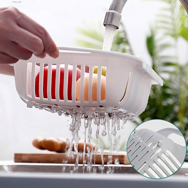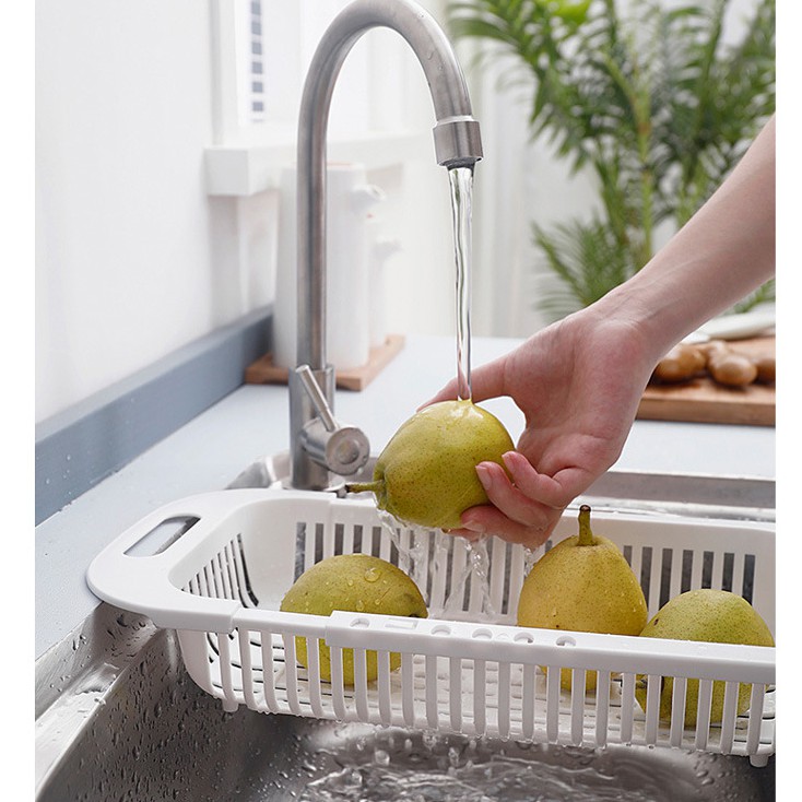 Nhà cửa & Đời sống > Dụng cụ chăm sóc nhà cửa > Chậu, xô & gáo nước || Rổ Rửa Rau Củ Quả Gác Bồn Rửa Chén Thu Gọn, Rổ Gác Bồn Rửa Chén, Rổ Đa Năng Thông MinhCòn hàng