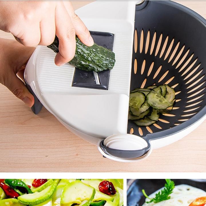 Rổ Rửa Rau Củ Quả Thông Minh - KIêm Dụng Cụ Thái Lát, Sợi, Nạo Rau Củ, Đa Năng 9in1