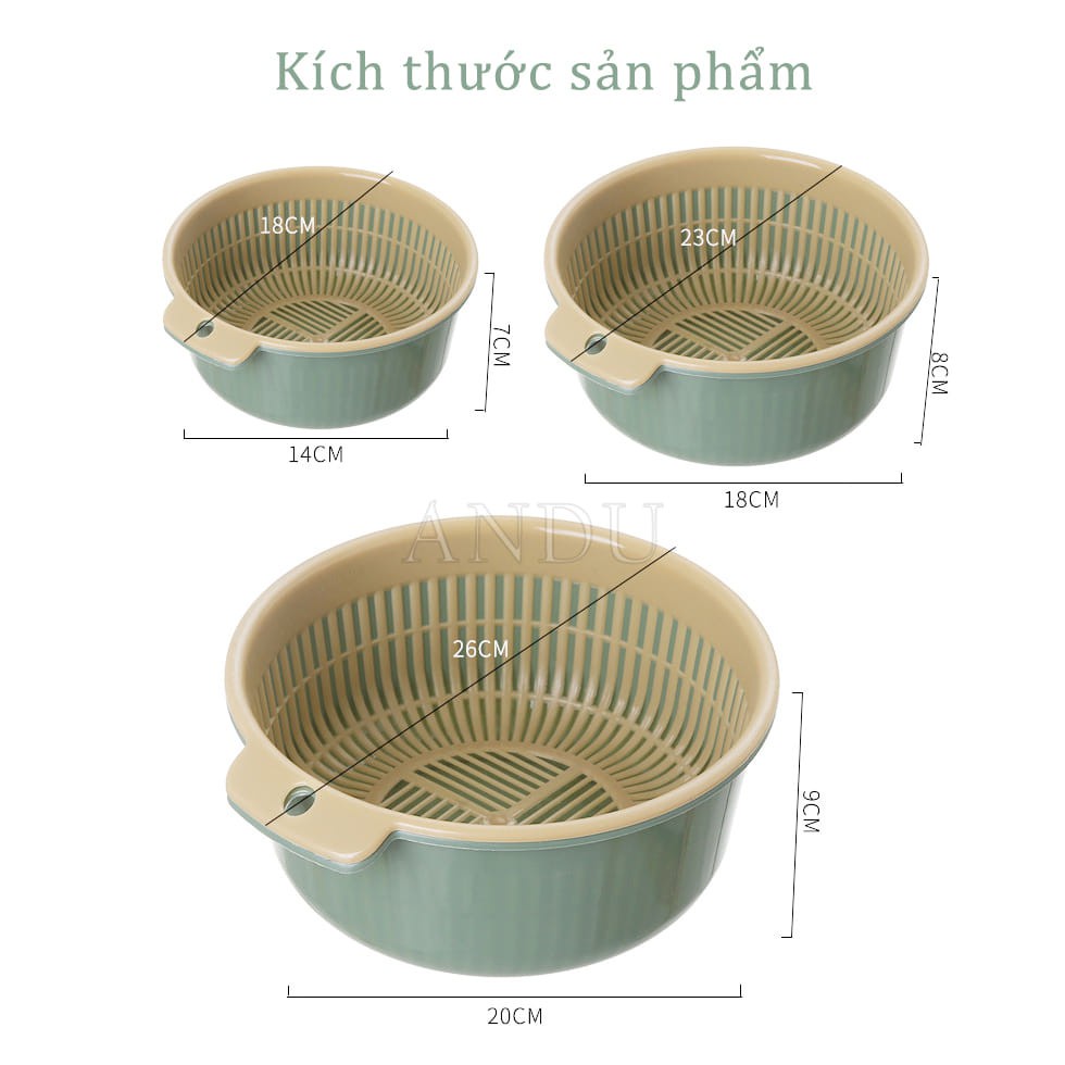 Nhà cửa & Đời sống > Dụng cụ chăm sóc nhà cửa > Chậu, xô & gáo nước || Rổ Rửa Rau Kèm Chậu, Bộ Thau Rổ Nhựa Tiện Lợi Đường Kính 18-23-26cmCòn hàng