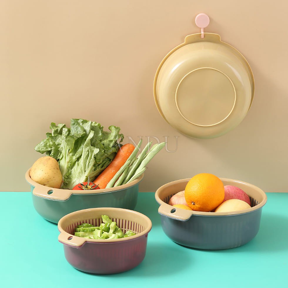 Tên Sản Phẩm : Rổ rửa rau kiêu chậu hai lớp siêu tiện dụng S6 - Có lỗ treo
