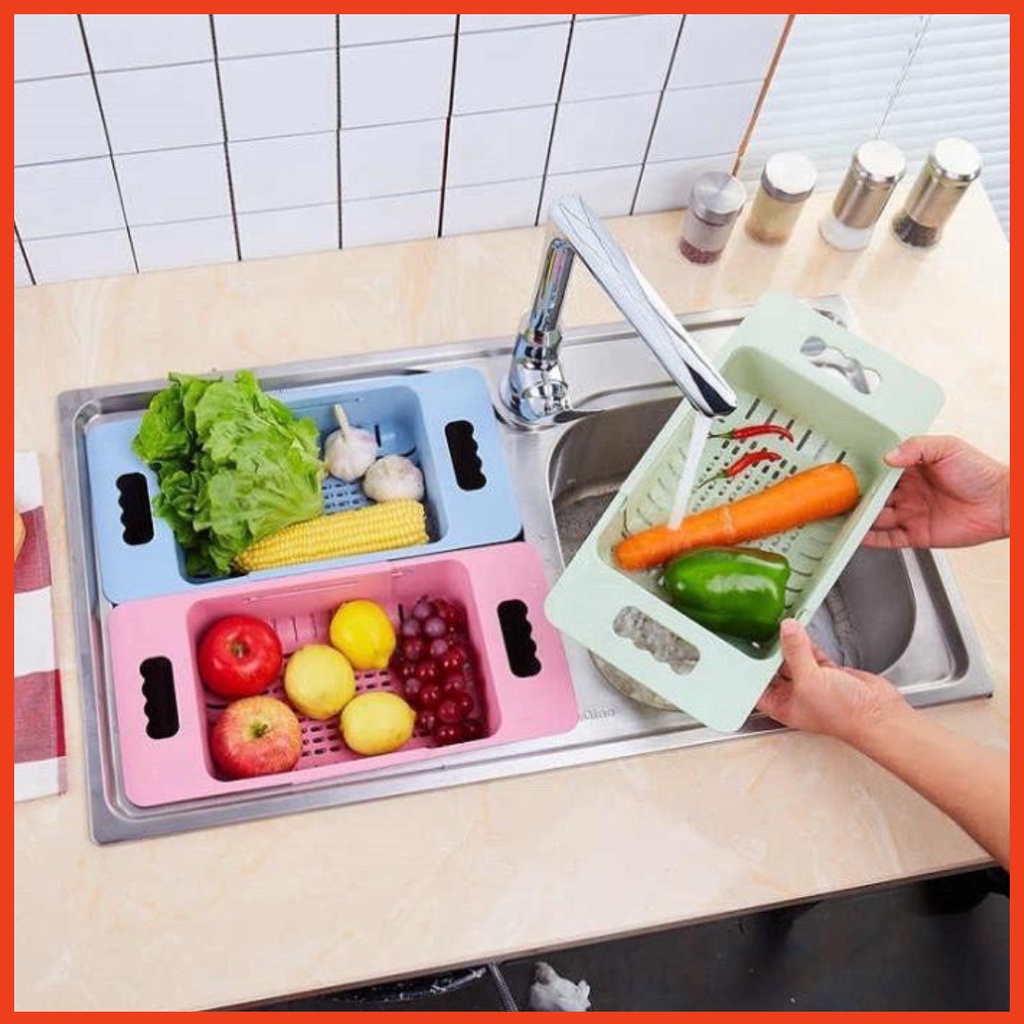 Giới thiệu Rổ rửa rau thu gọn Giá đựng đồ ăn thực phẩm hoa quả có tay gác bồn rửa bát điều chỉnh độ dài