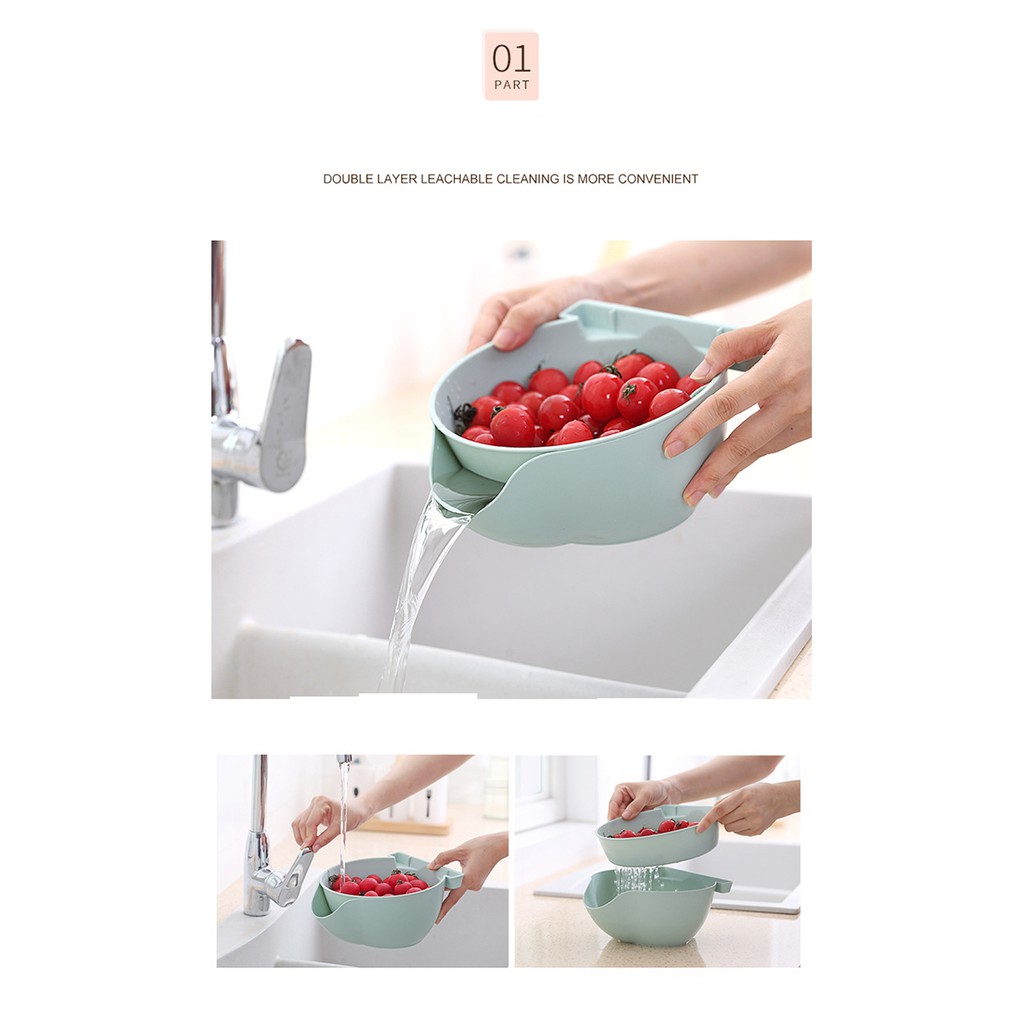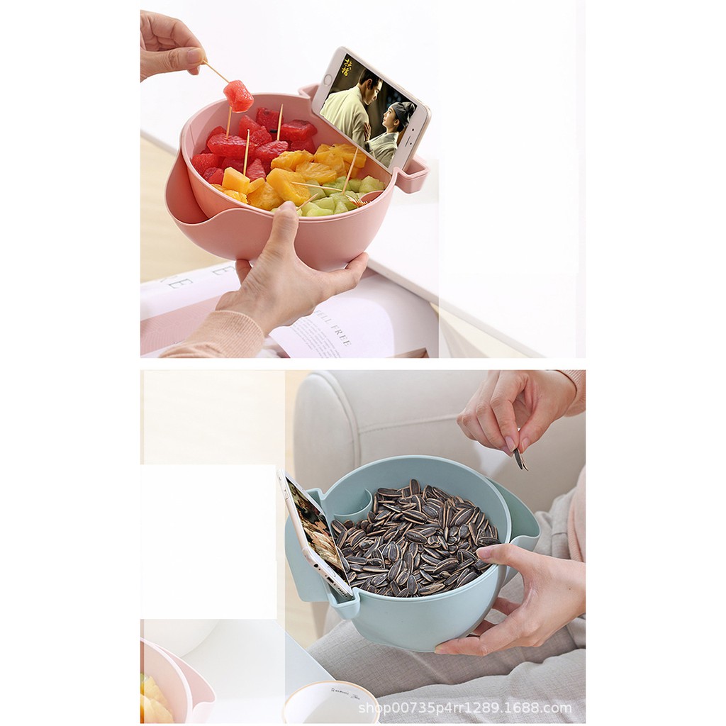 Rổ rửa và đựng hoa quả 2 tầng có khe cắm ipad