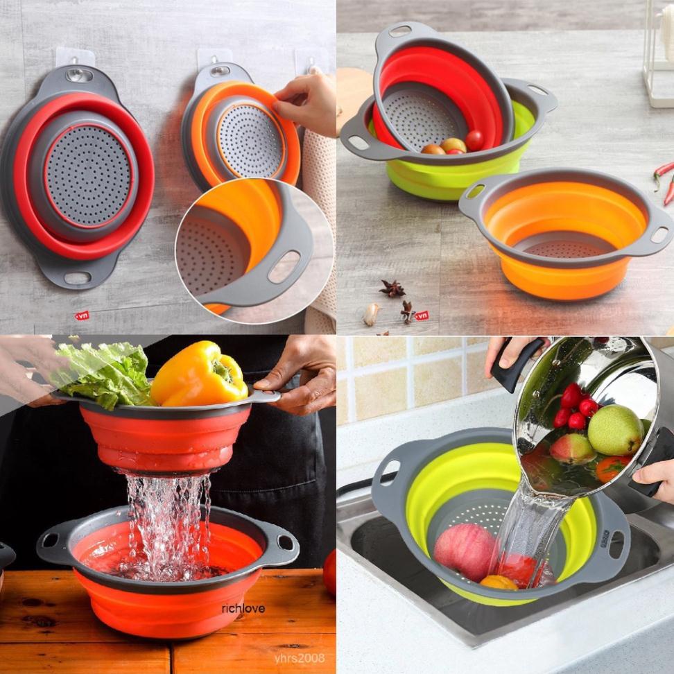 Nhà cửa & Đời sống > Dụng cụ nhà bếp > Dụng cụ lọc || Rổ silicon gấp gọn tiện lợi (đk 22cm có quai 30cm)Còn hàng