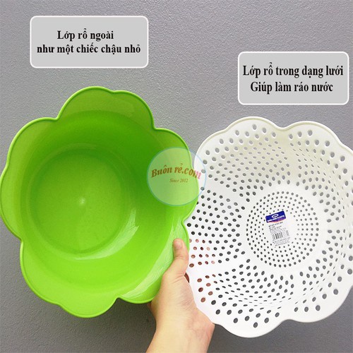 - Rổ có thau hứng ở dưới để hoa quả, rau sống không rớt nước ra ngoài. Chất liệu nhựa Việt Nhật nhiều màu đẹp và bền.