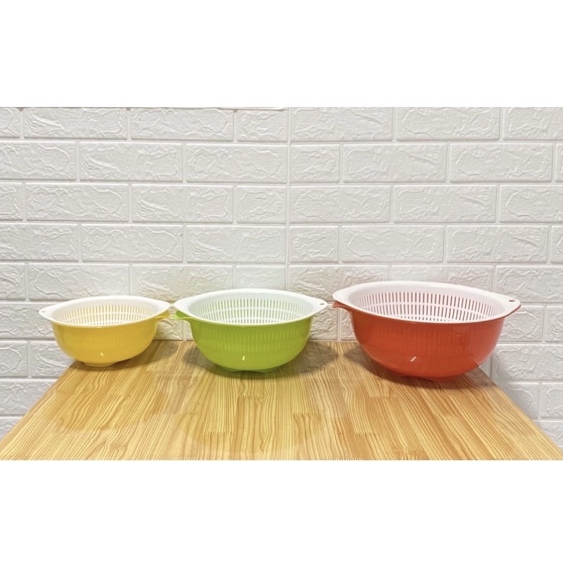 Bộ sản phẩm có thiết kế thông minh, tiện lợi với 1 thau và 1 rổ. Bạn có thể dùng thau để rửa trái cây, các loại rau củ... và rổ để đựng cho thực phẩm ráo nước trước khi chế biến.