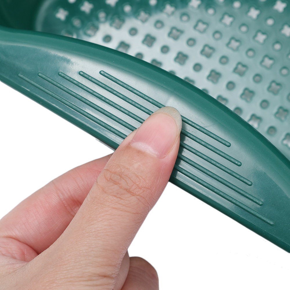 Thiết kế rỗng ở đáy với hoa văn được mã hóa có thể tách rời nhanh chóng và trơn tru ngăn cách khô và ướt chất thải thực phẩm, tránh tắc nghẽn cống bồn rửa, tạo điều kiện thông gió và thoát nước, sạch sẽ và vệ sinh, không dễ sinh vi khuẩn.