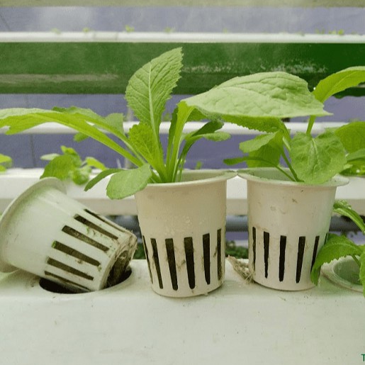 Đây là sản phẩm không thể thiếu khi trồng rau thủy canh. Rọ nhựa thủy canh là vật dụng dùng để đựng giá thể hoặc ươm cây con cho rau trồng thủy canh. Hạt giống sẽ được gieo vào rọ. Sau đó, rọ nhựa được đặt vào ống chuyên dụng trồng thủy canh. Đáy rọ sẽ tiếp xúc với dung dịch dinh dưỡng. Khi hạt giống nảy mầm, rễ cây sẽ chui qua các khe nhỏ của rọ và lấy các dưỡng chất từ dung dịch thủy canh để nuôi cây phát triển.