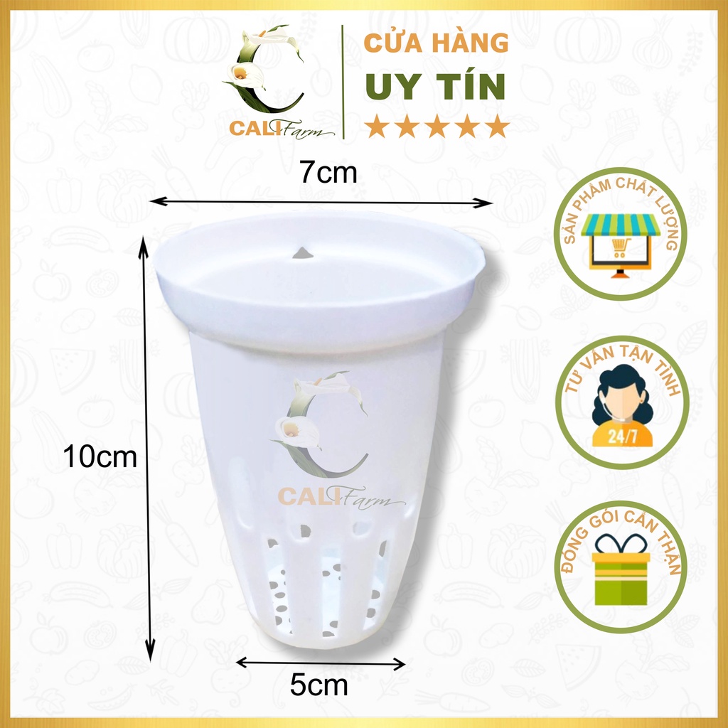 1. Kích thước miệng ngoài rọ thủy canh trắng: 70 mm (6,5 cm)