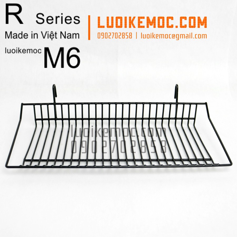 Công dụng: Rổ Treo Lưới M6 Trắng dùng chung với khung lưới để làm kệ trưng bày sản phẩm: mỹ phẩm, phụ kiện, quần áo, cây cảnh bonsai mini, chậu cá, chậu hoa trang trí, chậu xương rồng, hoa mini, giấy gói quà, hộp quà,....