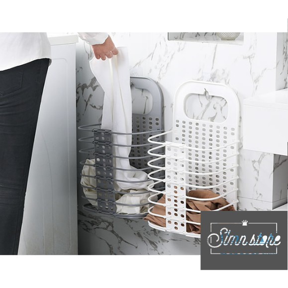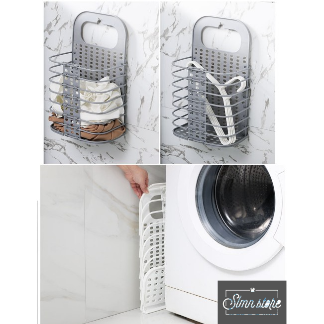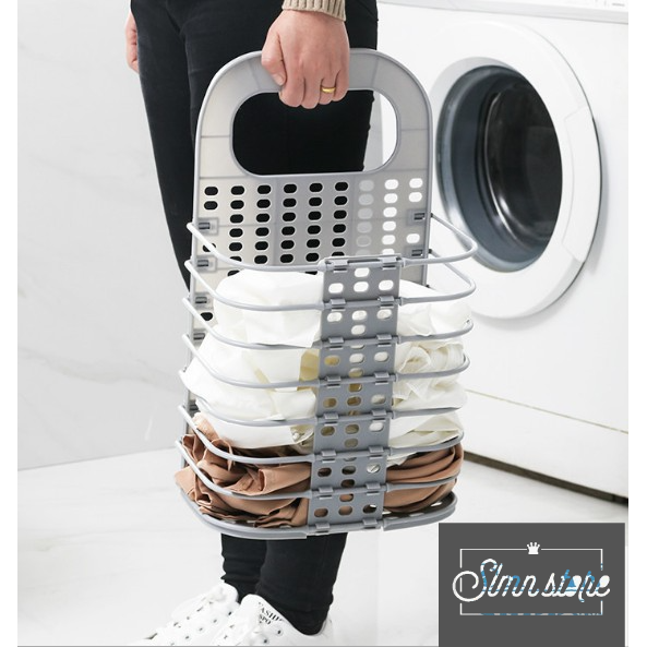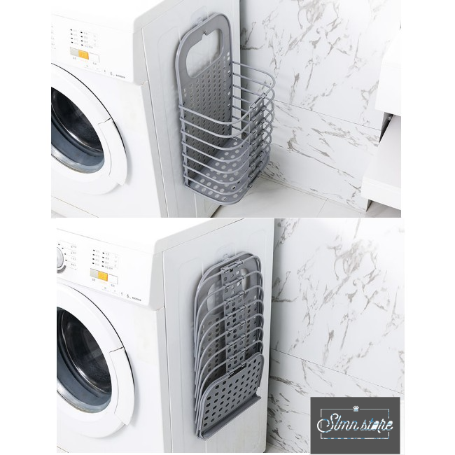 Giỏ sử dụng khi quần áo chưa giặt ngay hoặc khi tắm để quần áo vào.... để ở sườn máy giặt có thể để móc quần áo, quần áo chưa kịp giặt......Giỏ được gấp gọn càng tiện ích