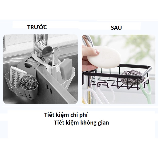 Rổ treo vòi nước rửa chén, vòi nước phòng tắm, có móc treo tiện lợi, khung sắt siêu chắc chắn