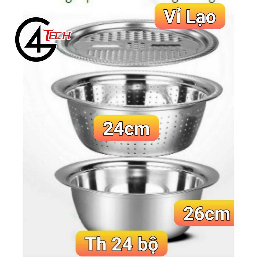 Bộ bao gồm : 01 Mặt nạo nhiều kiểu, 01 Rổ inox, 01 Chậu inox 100% cao cấp dày dặn