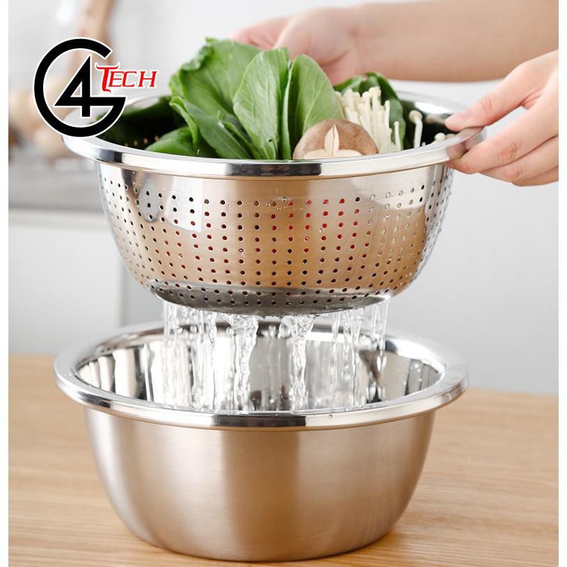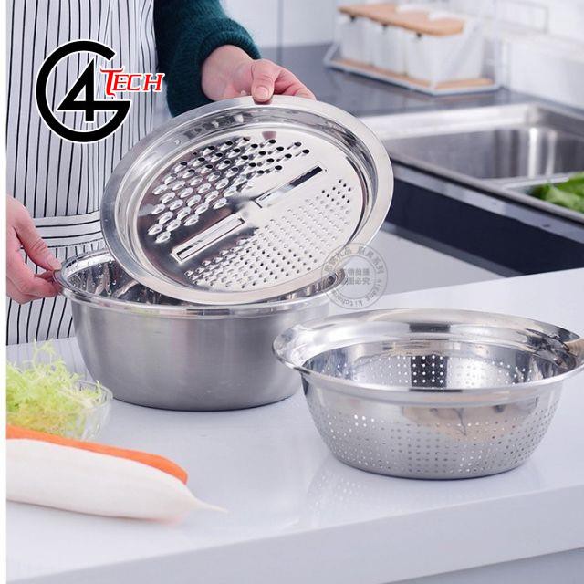 Nhà cửa & Đời sống > Dụng cụ nhà bếp > Bàn nạo, dụng cụ bào, cắt || Bộ rổ và chậu kiêm bào nạo rau củ inox cao cấpCòn hàng