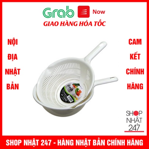 Bộ rổ và thau nhựa 1.2L có tay cầm màu trắng NỘI ĐỊA NHẬT BẢN