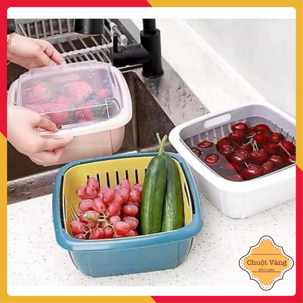 Rổ Vuông Kèm Chậu 2 Trong 1 Có Nắp Đậy