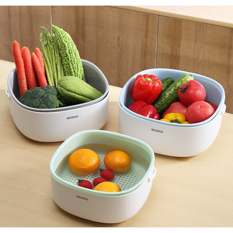 Nhà cửa & Đời sống > Dụng cụ chăm sóc nhà cửa > Chậu, xô & gáo nước || Rổ vuông kèm chậu hứng ECOCO (màu ngẫu nhiên)Còn hàng