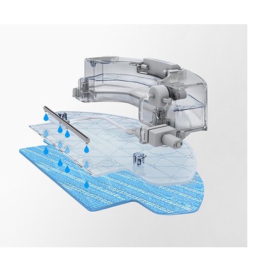 Một máy bơm nước được điều khiển bằng các cảm biến thông minh luôn cung cấp vừa đủ độ ẩm cho khăn lau ướt từ một ngăn chứa lớn. Hơn nữa, robot có cảm biến để tự động chuyển sang chế độ lau ướt hoặc lau khô, để đảm bảo an toàn và sạch sẽ nhất cho các loại bề mặt sàn khác nhau.