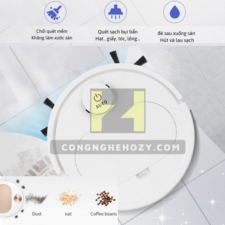 - Bụi mịn , bụi, đất cát vương vãi , tóc rụng, lông chó mèo, vụng giấy , các loại rác có kích thước nhỏ dưới 1cm và nhẹ đều được quét sạch sẽ