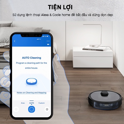 - Robot có chế độ quét, hút và lau đồng thời.