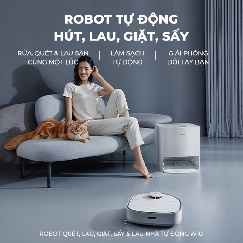 Robot hút bụi lau nhà Dreame W10, lực hút 4000pa, tự giặt giẻ, tự hút rác lên dock sạc, hàng chính hãng