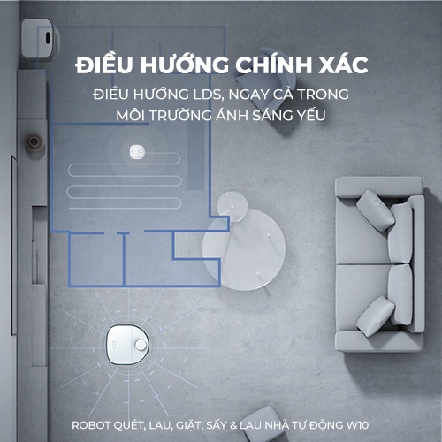 - Hệ thống LiDAR quét và thiết lập lộ trình dọn dẹp thông minh