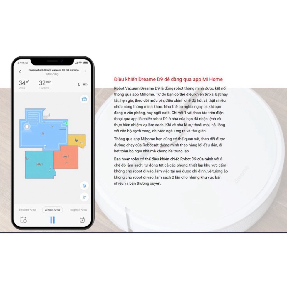 Hiện tại phần mềm của Robot Dreame D9 lưu được 1 bản đồ. Theo thông tin từ nhà sản xuất máy đã được trang bị sẵn phần cứng để lưu được 3 bản đồ, tính năng này sẽ xuất hiện vào phiên bản cập nhật phần mềm trong tương lai.