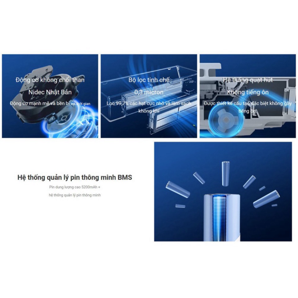 Đồng thời, lõi lọc HEPA giúp bạn làm sạch bụi mịn, phấn hoa, formaldehyde và các loại vi khuẩn gây hại cho sức khỏe, đảm bảo làm sạch đến 99.9% sàn nhà, bảo vệ sức khỏe cho cả gia đình bạn