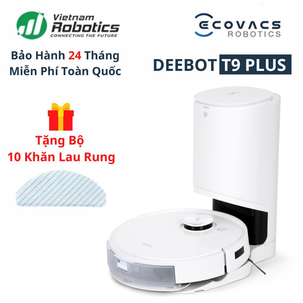 Robot Hút Bụi Lau Nhà Ecovacs Deebot T9 Plus - Dock Hút Rác Tự Động - Lực Hút 3000Pa - Bản Quốc Tế - Bảo Hành 24 Tháng