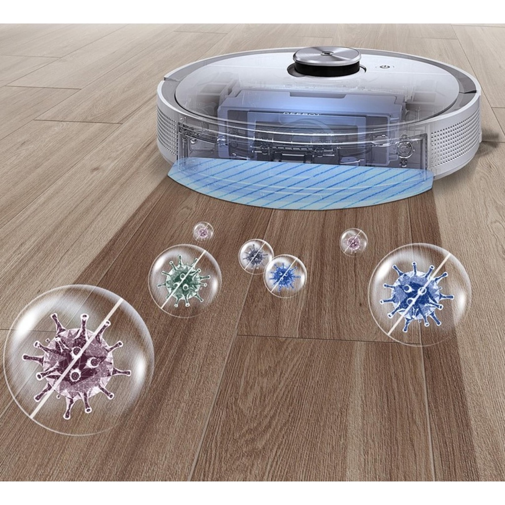 Không chỉ hút sạch bụi bẩn mà còn lau ướt kháng khuẩn. Bộ phận lau ướt là cấu tạo thông minh được thiết kế bởi sự hợp tác giữa Ecovacs và Unilever. Công thức làm sạch độc quyền Ozmo giúp tăng hiệu quả làm sạch nhanh chóng.