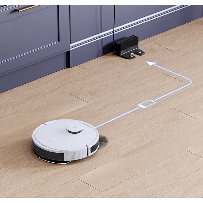 Khi pin yếu, robot sẽ tự động trở về dock sạc để sạc pin. Nếu nó đang bỏ dở vị trí nó sẽ nhớ và quay lại hoàn thành nốt công việc khi pin được sạc đầy .