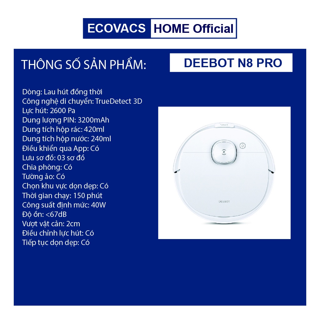 ✅ Robot hút bụi lau nhà Ecovacs Deebot OZMO N8 Pro chính hãng