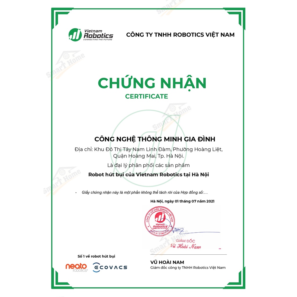SMARTHOME CAM KẾT SẢN PHẨM CHÍNH HÃNG ECOVACS - TƯ VẤN, HỖ TRỢ SỬ DỤNG BỞI ĐỘI NGŨ KĨ THUẬT CHUYÊN NGHIỆP TỪ VIETNAMROBOTICS