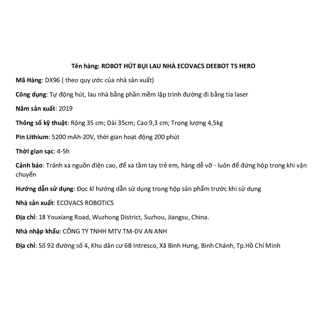 Tên hàng: ROBOT HÚT BỤI LAU NHÀ ECOVACS DEEBOT T5 HERO